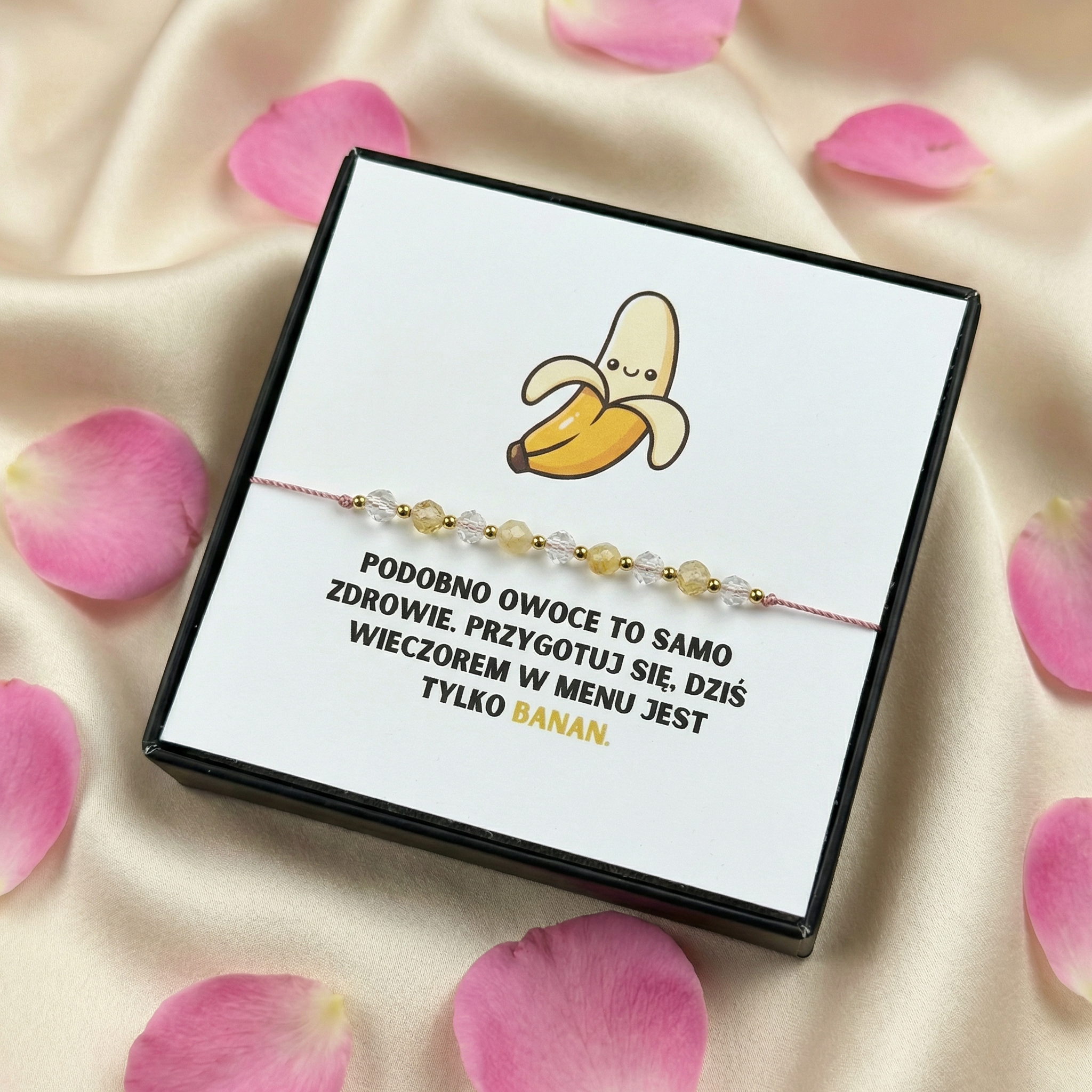 Ta bransoletka to nie tylko żart – to biżuteria wykonana z wyselekcjonowanych kamieni naturalnych, które mają za zadanie rozświetlić każdy dzień: