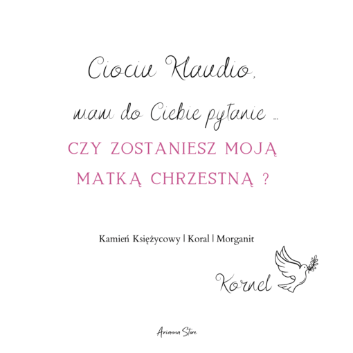 - kamienie naturalne : Kamień księżycowy, Koral, Morganit