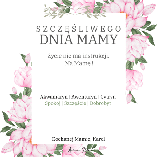 - Akwamaryn – przynosi spokój i harmonię, przypominając o bezwarunkowej miłości matki.