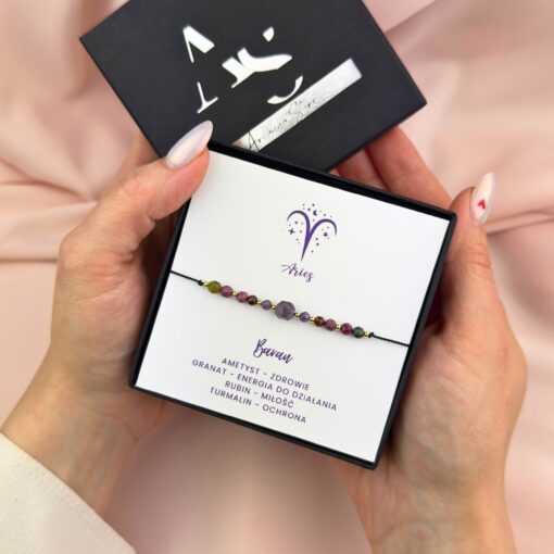 Bransoletka Znak Zodiaku Baran – ametyst, granat, turmalin, rubin