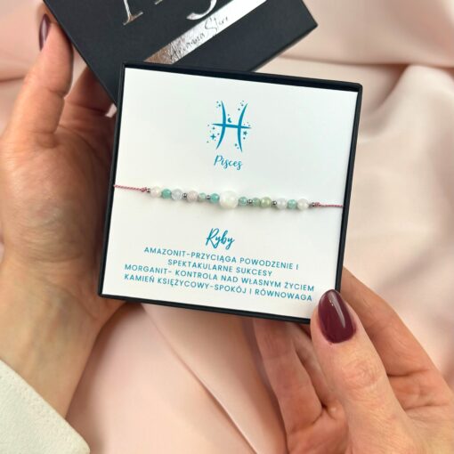 Bransoletka Znak Zodiaku Ryby – amazonit, morganit, kamień ksieżycowy