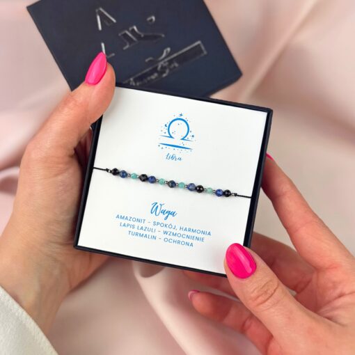 Bransoletka Znak Zodiaku Waga – amazonit, lapis lazuli, czarny turmalin